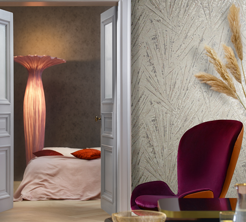 Des textures minérales et des couleurs lumineuses, du blanc au gris argenté, apportent calme et clarté. Les motifs inspirés du béton, du plâtre et des surfaces naturelles sont sublimés par des embossages subtils et des finitions mates ou métalliques, offrant une atmosphère aérienne et apaisante.