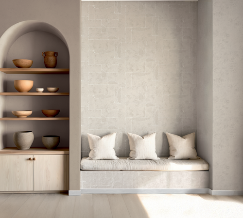 Fabriquée à partir d’argile locale et sans substances nocives, la collection Terra favorise un climat intérieur sain. Les surfaces évoquent la chaux, le marbre ou la pierre, avec des effets de relief subtils qui apportent authenticité et profondeur aux murs.